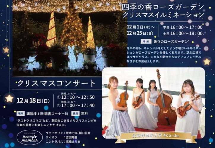 クリスマスソングを弦楽四重奏でお楽しみいただけるクリスマスコンサートも実施いたします。