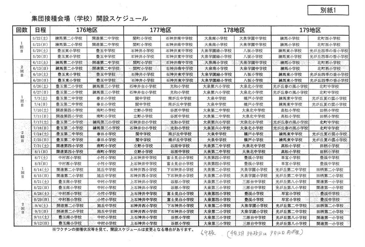 5月22日 (土) 区立小中学校体育館での接種開始