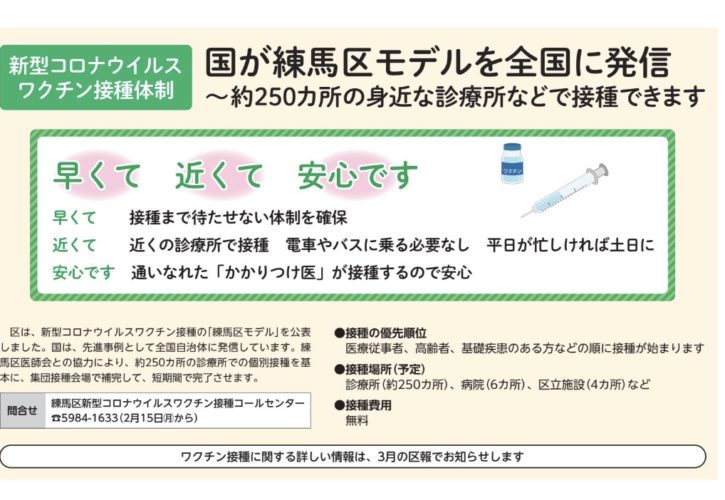 練馬区報にワクチン接種に関する問合せコールセンター開設のご案内