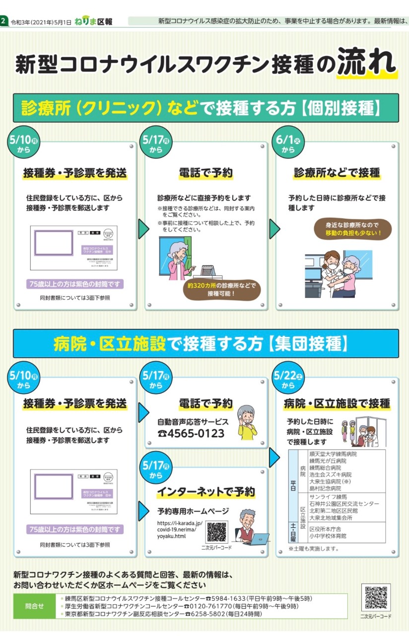 本日は、練馬区報5月1日号のワクチン接種について紹介させて頂きます。