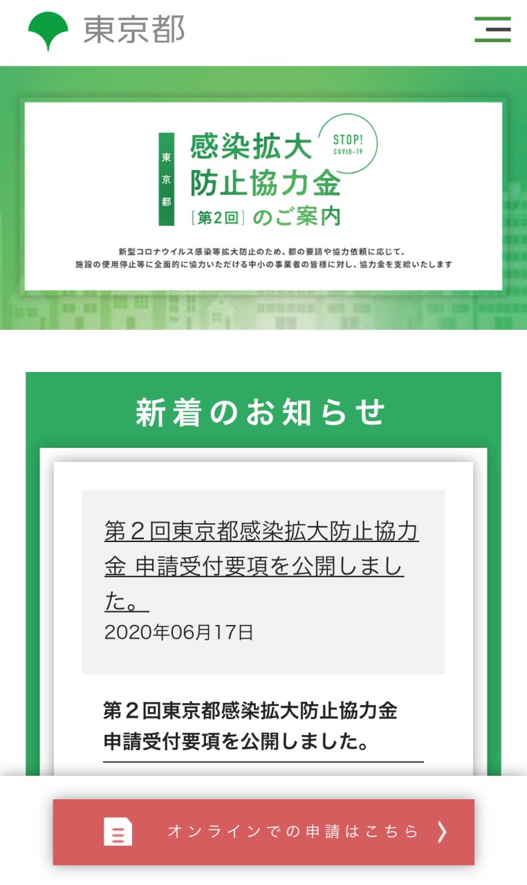 都の要請や協力依頼に応じて頂いた店舗・施設の使用停止に全面的に協力いただいた中小事業者、個人事業主に給付される協力金です。